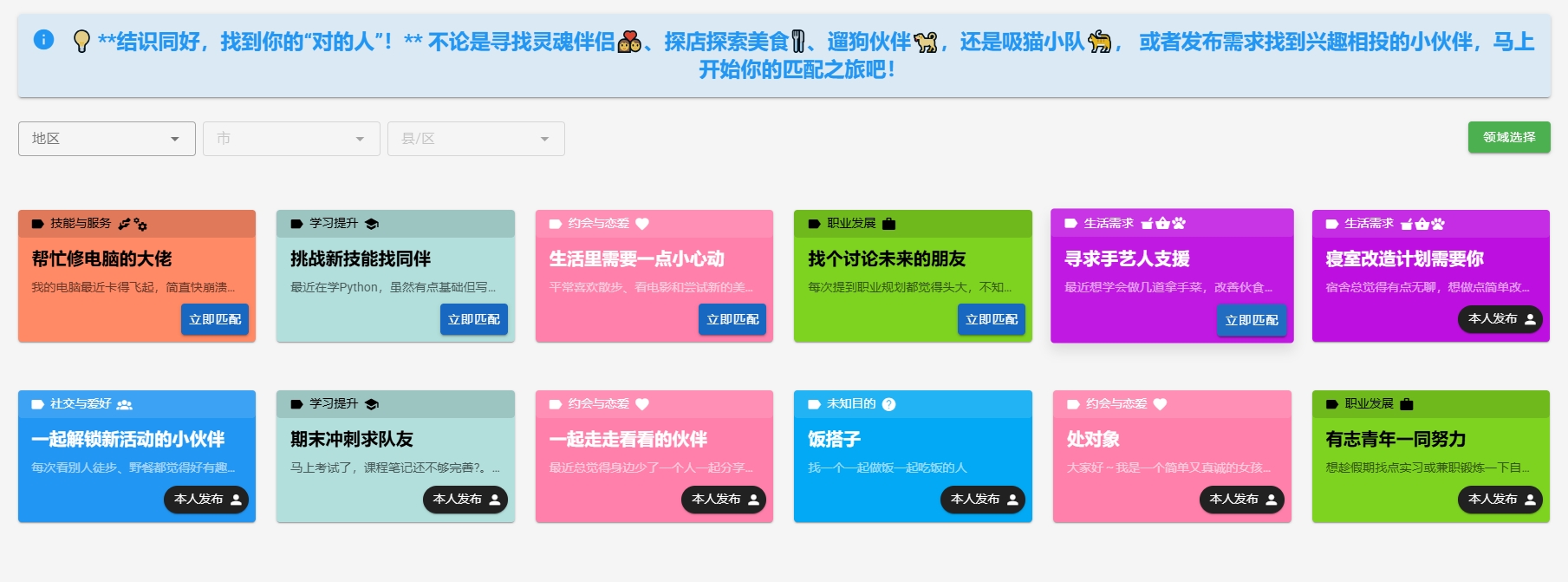 以用户兴趣为基础,以圈子为契合点,让相同兴趣爱好或者有交友意向交流的人一起学习交流。